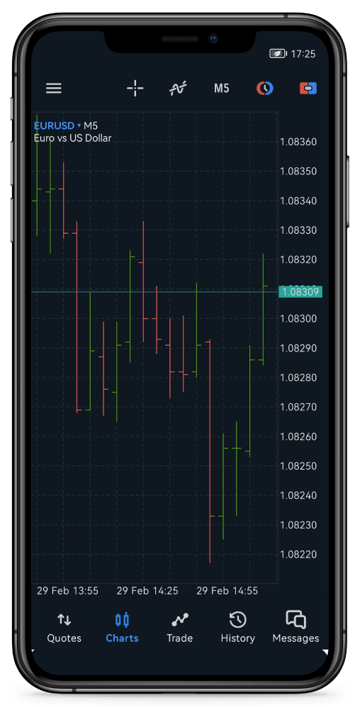 现在可以在我们的交易应用程序中使用MetaTrader 5。您可以使用它来入金、出金、交易工具、管理账户并跟踪您的绩效。您交易所需要的一切 — 就在一个应用程序中!