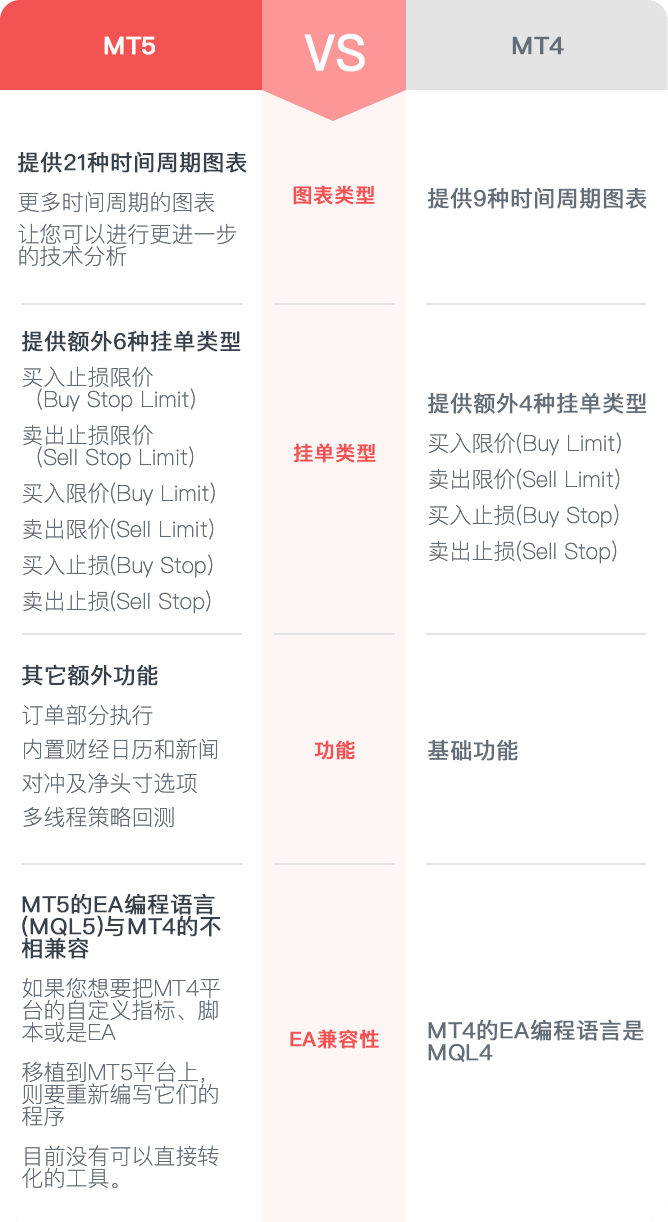 MT5平台由迈达克公司在MT4平台的基础上设计,它提供更多的交易功能